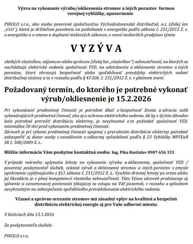 Výzva na odstránenie a okliesnenie stromov a iných porastov
